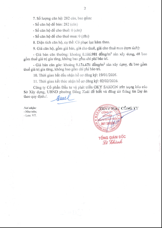 Địa điểm tiếp nhận hồ sơ tại Văn phòng chủ đầu tư – Công ty Cổ phần Đầu tư và Phát triển OKY SAIGON, địa chỉ số nhà G101, đường số 2, Dự án khu dân cư liền kề KCN Đồng Xoài I, khu phố Tân Thành 2, phường Đồng Xoài, tỉnh Đồng Nai. Thông tin liên hệ qua số điện thoại 0919 799 414.