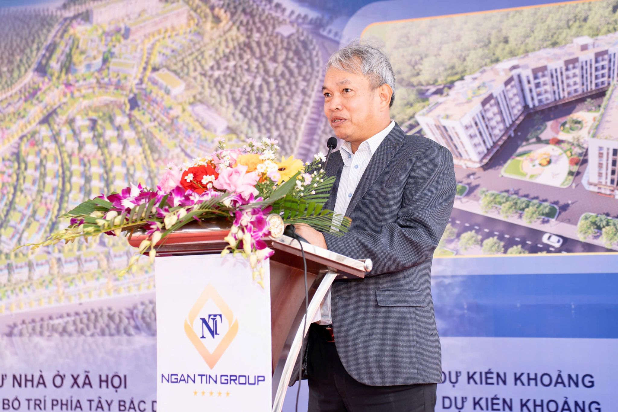 Tổng Giám đốc Ngân Tín Group Đinh Phú Minh phát biểu tại Lễ khởi công